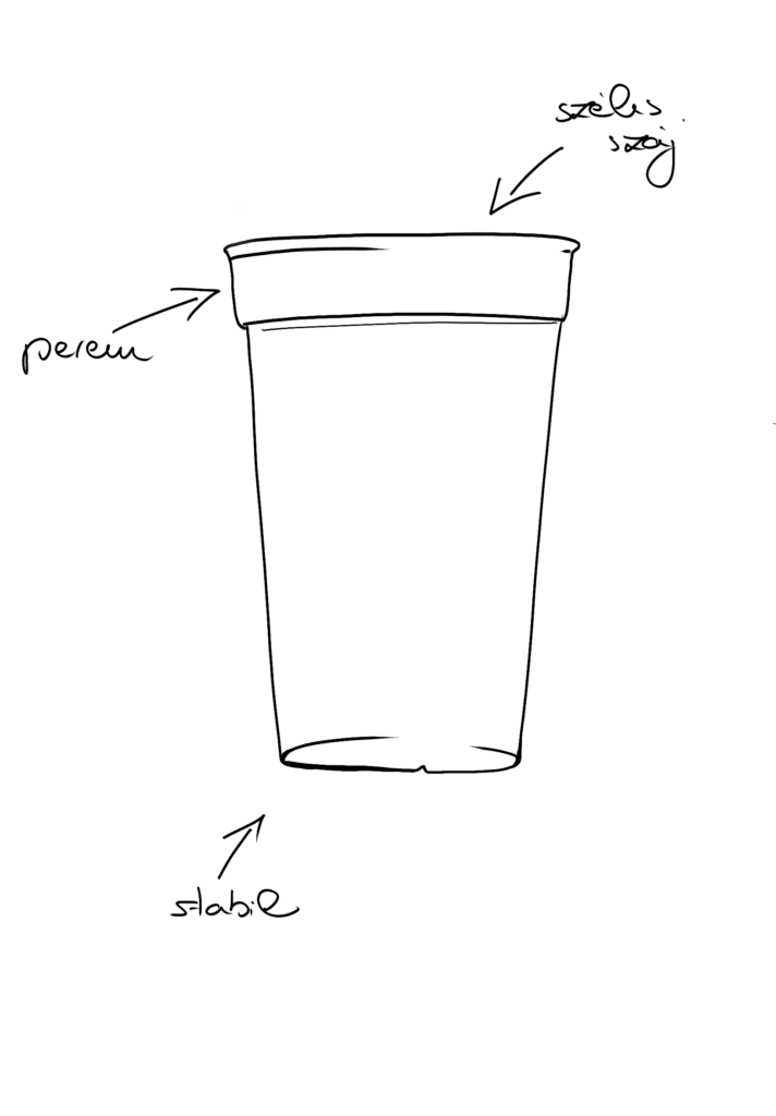 - stabil felépítésű pohár a szélesebb alj és a peremkialakítás miatt